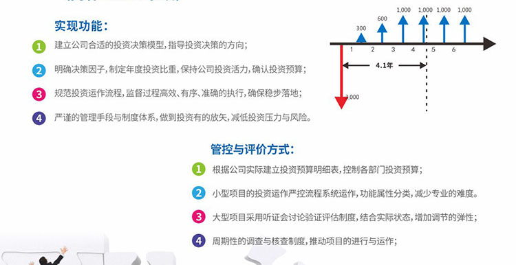 系統(tǒng)特色:規(guī)范投資管理的模型執(zhí)行落實(shí),實(shí)現(xiàn)與財(cái)務(wù)收益的一體化,嚴(yán)控投資的方向與效益,實(shí)現(xiàn)投資盈利。