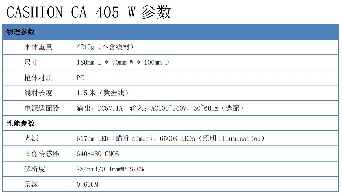 Ca-405-W藍(lán)牙無線手持條碼掃描槍的高性能配置: